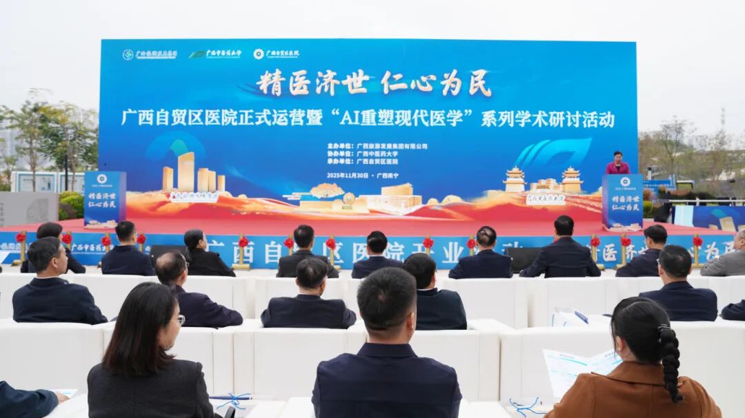 11月30日,廣西自貿(mào)區(qū)醫(yī)院正式運(yùn)營(yíng)暨“AI重塑現(xiàn)代醫(yī)學(xué)”系列學(xué)術(shù)研討活動(dòng)在南寧市舉行。中國(guó)工程院院士廖萬(wàn)清教授,國(guó)醫(yī)大師、首批全國(guó)名中醫(yī)黃瑾明教授,中國(guó)知名呼吸病學(xué)專家施煥中教授,中國(guó)生物醫(yī)學(xué)信息學(xué)智能醫(yī)學(xué)知名專家沈百榮教授,中國(guó)著名醫(yī)學(xué)人文學(xué)者王一方教授,知名人工智能+醫(yī)療專家、泛血管疾病AI-CDSS全國(guó)聯(lián)盟發(fā)起人程國(guó)華教授,杭州健培科技首席醫(yī)療戰(zhàn)略官鄭昶教授等專家代表,自治區(qū)體育局黨組書(shū)記、局長(zhǎng)黃劍峰,廣西中醫(yī)藥大學(xué)黨委副書(shū)記、校長(zhǎng)姚春,南寧市政府黨組成員、副市長(zhǎng)徐科峰,自治區(qū)衛(wèi)生健康委黨組成員、副主任吳興華,自治區(qū)國(guó)資委黨委委員、副主任王海燕,自治區(qū)文旅廳黨組成員、副廳長(zhǎng)吳玉國(guó),自治區(qū)藥監(jiān)局黨組書(shū)記、局長(zhǎng)李勇強(qiáng),自治區(qū)醫(yī)保局黨組成員、副局長(zhǎng)姚方,緬甸駐南寧總領(lǐng)事館參贊尹妙凱,廣旅集團(tuán)黨委書(shū)記、董事長(zhǎng)容賢標(biāo),廣旅集團(tuán)總經(jīng)理、黨委副書(shū)記、副董事長(zhǎng)潘鳴等領(lǐng)導(dǎo)嘉賓出席活動(dòng)。